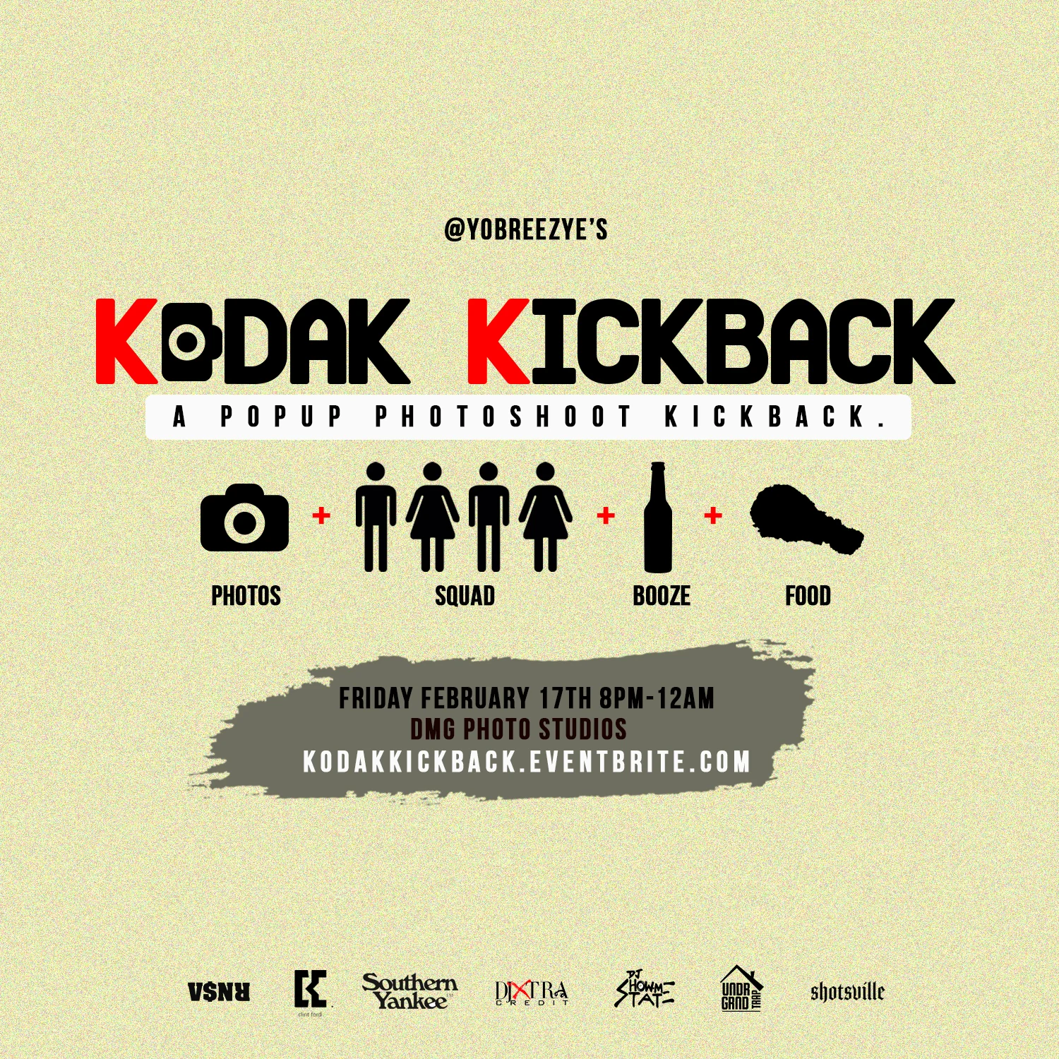 Friday, February 17th, Yobreezye will be curating the very first Kodak Kickback. This event combines and photography element with a social setting. We all like to snap up. We all like to kick the shit. Why not do it all on some dope backdrops with some dope people. There will be a pop up shop from the homies over at Southern Yankee. Vibes from DJ Showmestate & DJ Xtra Credit. Yobreezye will be on the lens. Make plans and bring your friends.